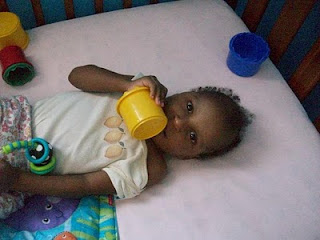 Jason is back to normal now, but the medicine we gave him made him really sleepy, and he slept most of yesterday, and was very grouchy the rest of the time. Poor little guy, he felt so sick he didn't even want to eat. Right now though (12:35) he's happily playing in the walker after gobbling his lunch.